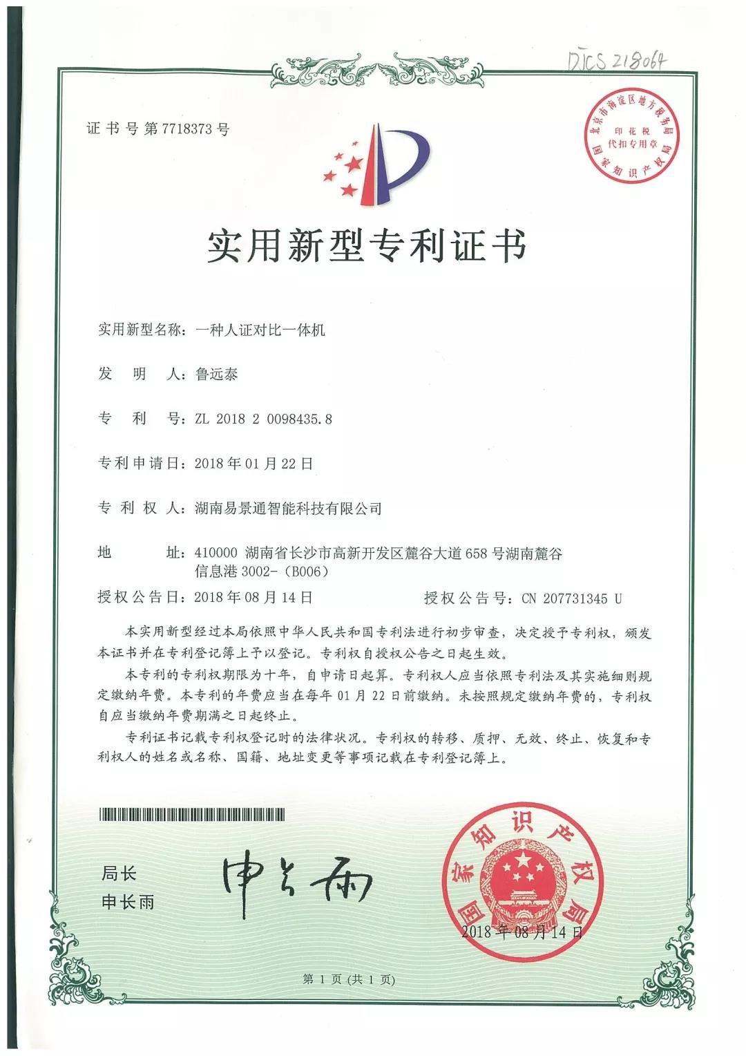 發(fā)明專利:一種人證對比一體機(jī)