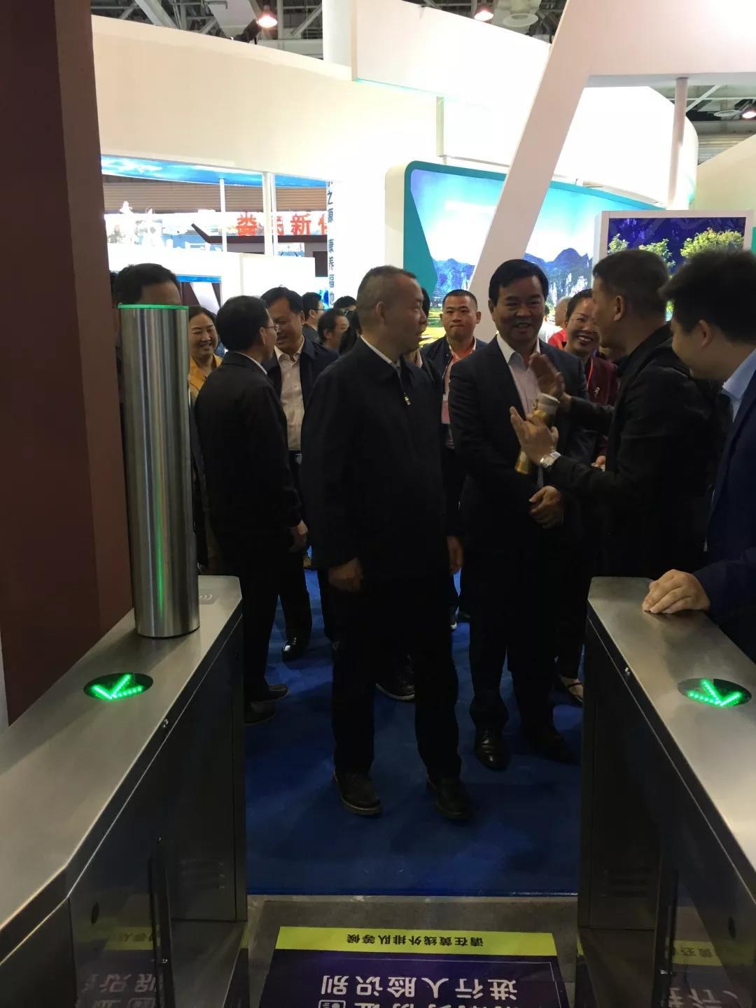 湖南省副省長何報翔來體驗(yàn)易景通人臉識別檢票系統(tǒng)。